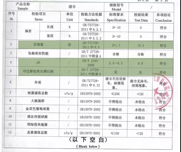 酒店、飯店提供給食客和住客用的一次性濕巾,不少檢出有可遷移性熒光劑。酒店的一次性濕巾通過擠壓,一部分液體會(huì)滲透到紗布上,在特殊的儀器下,紗布發(fā)出了藍(lán)色光亮,證明濕紙巾上具有可遷移性熒光增白劑。萬戈濕巾檢測(cè)報(bào)告,在“可遷移性熒光劑”這個(gè)一項(xiàng)上,顯示“無”。在這一點(diǎn)請(qǐng)小伙伴們放心使用。
