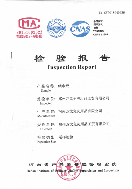 【衛(wèi)生紙檢驗(yàn)報(bào)告】